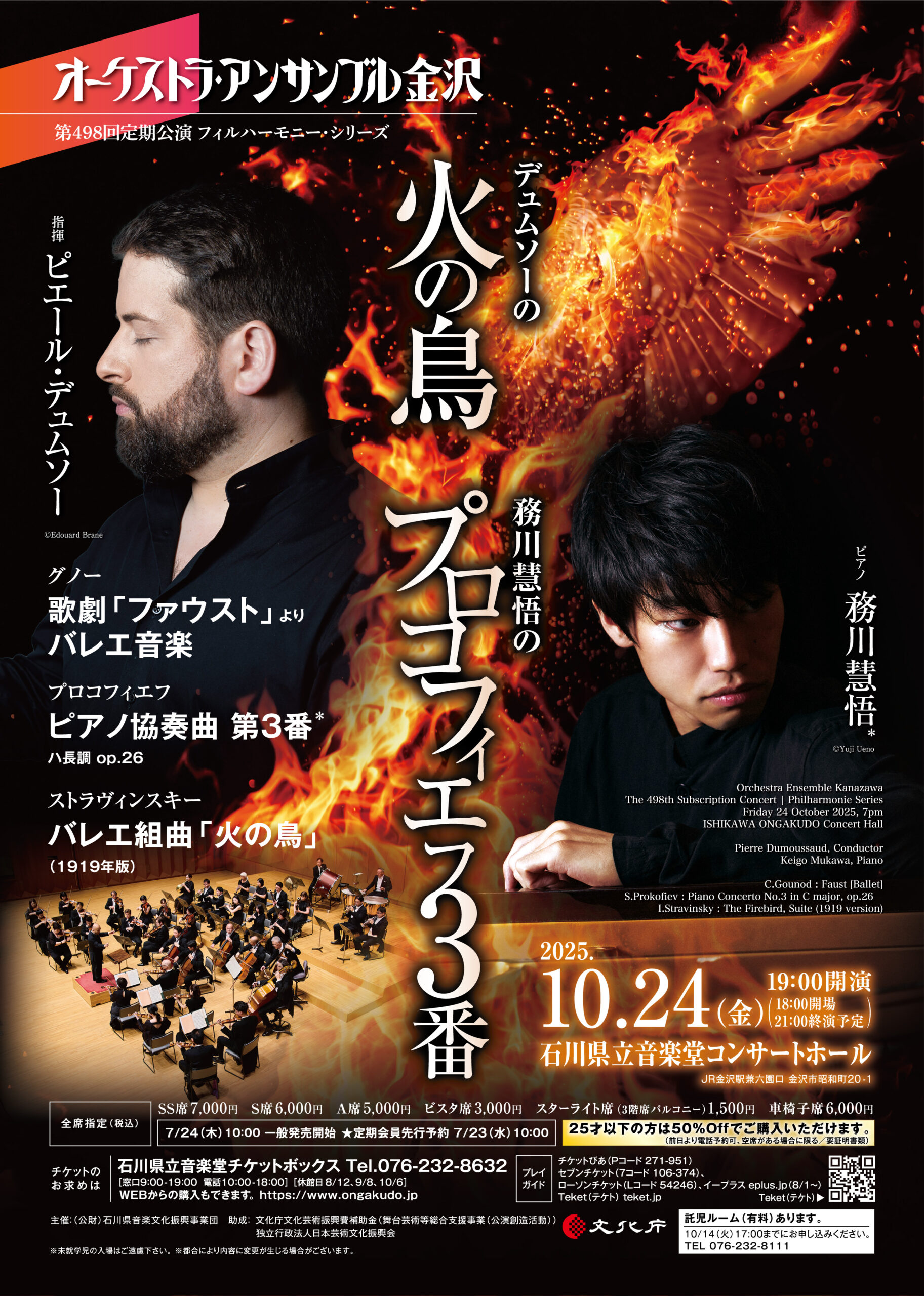 一方、ストラヴィンスキーのバレエ音楽《火の鳥》は1910年、バレエ・リュス(ロシア舞踊団)からの依頼で書かれ、パリ・オペラ座で初演。火の鳥から力を得た王子イワンをめぐる、ロシアの古い冒険譚を題材に織り上げられる、鮮烈な音のタペストリーだ。バレエを伴わない組曲版は3種があるが、今回取り上げられるのは、最も演奏機会の多い1919年版。さらに、デュムソー十八番のフランス作品、グノーの歌劇《ファウスト》からのバレエ音楽が“前菜”として添えられる。常に、音楽の最先端を走って来たパリ。そして、同地から“音の使者”としてやって来た、若きマエストロ。文化都市の息吹が、リアルに感じ取れるステージともなりそうだ。
