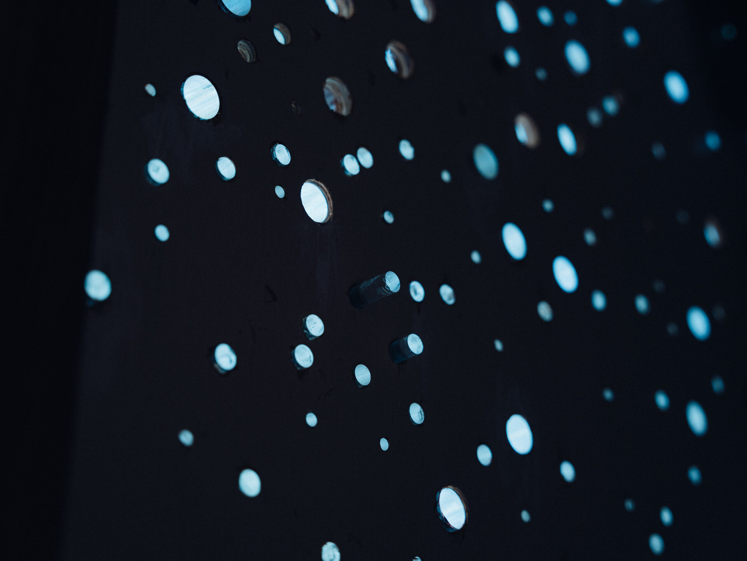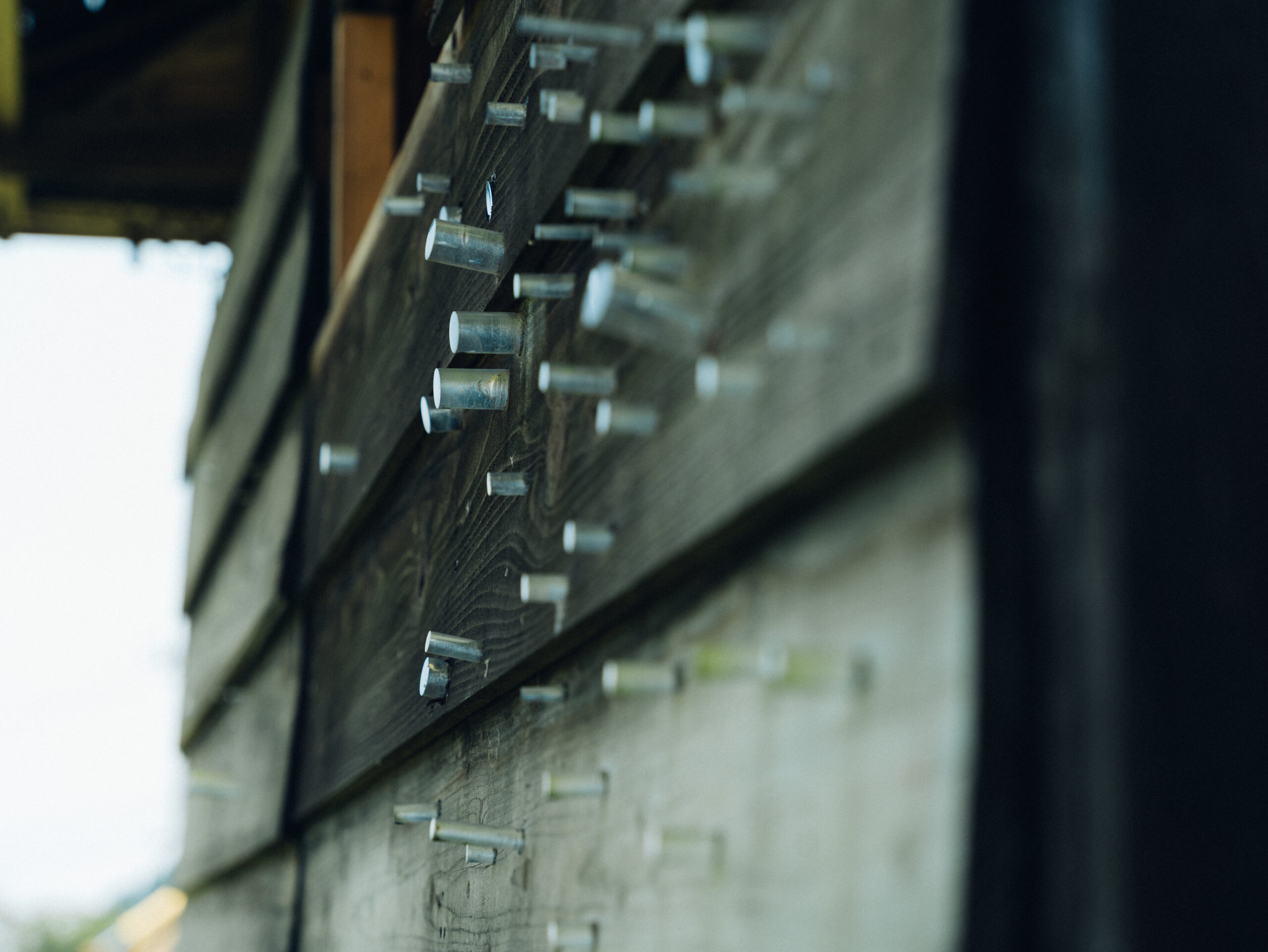 「あかるい家」は、もとは2021年の「奥能登国際芸術祭2020+」に寄せた作品です。珠洲市正院町の珪藻土工場の事務所だった空き家をまるまる使わせていただき、壁面や天井に無数の穴をあけて透明のアクリルを差し込むことで、昼は部屋に太陽の光を取り込み、夜は照明が外へと漏れだします。
