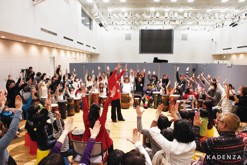 中でもちょっとおすすめしたいのがみんなで輪になって打楽器アンサンブルを楽しめる「ドラムサークル」。講師が先導してみんなで様々な形の打楽器を叩きます。難しいことなんて一つもない、どう表現したってOK。ニコニコ楽しそうに自分を表現する子どもたちのひたむきな気持ちに心動かされます。リ