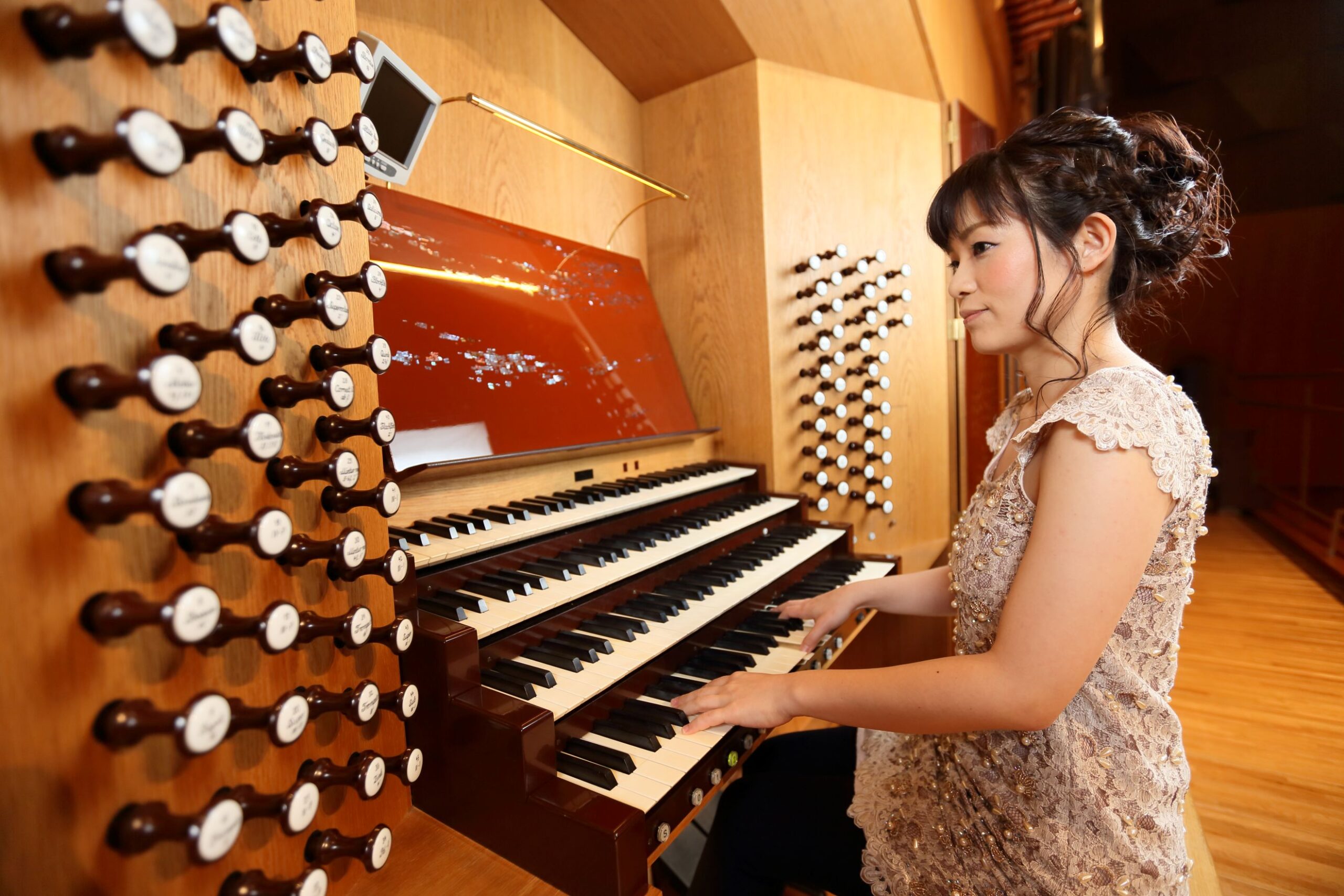 具体的には弾きこんでるんですね。弾いて空気をパイプに流さないと音が狂いやすくなるのです。あとは公演当日いきなり不具合が見つかったら大変なので、定期的に弾いて状態を確認するためです。そして、弾くたびに気になる箇所をメモしておくとヤマハが年に2回保守点検で音楽堂に来るとき、それを頼りに調整してくれます。