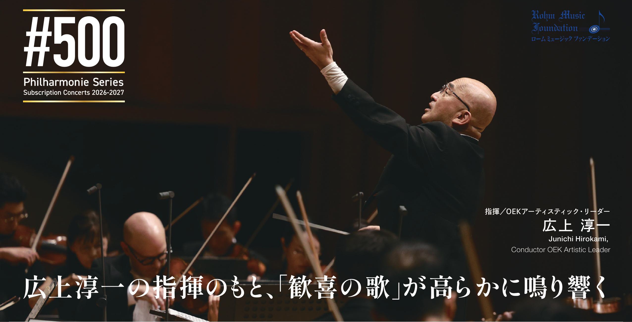 1989年4月にスタートして以来、数々の名演が繰り広げられてきたOEKの定期公演。37年という時を経て、いよいよ500回の節目を迎えることになった。この記念すべきステージを飾るのは、OEKアーティスティック・リーダーの広上淳一が振る、ベートーヴェンの「第九」。「抱き合え、多くの人々よ! この口づけは、全ての世界のものだ!」。戦禍や災禍が絶えることのない今だからこそ、 “真の歓喜”としての人類愛を高らかに謳い上げる「歓喜の歌」に改めて耳を傾けるべきではないだろうか。